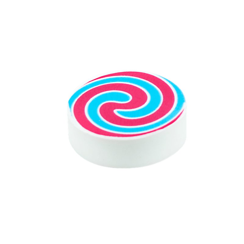 Corpo redondo. 3 estampas diferentes. Borracha redonda estampada. Sincroniza com os demais produtos da coleção.